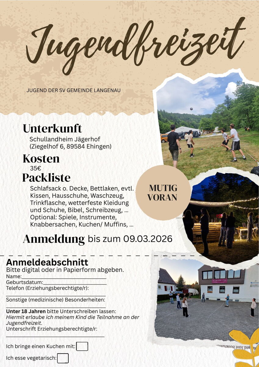 | 19:00 Uhr: Jugendkreis | 19:00 Uhr: Teeniekreis | |||||